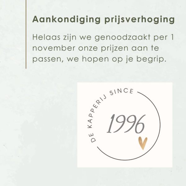 We begrijpen dat dit nooit leuk nieuws is, maar door de stijgende kosten van producten, materialen en salarissen kunnen we er helaas niet meer omheen.
